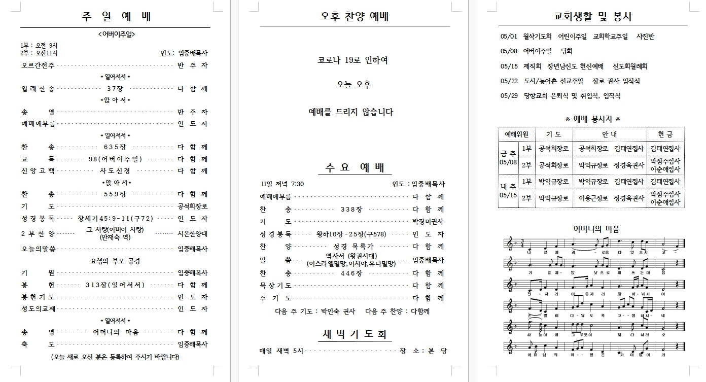 2022³â 05¿ù 01ÀÏ (¾î¸°ÀÌÁÖÀÏ/±³È¸±³À°ÁÖÀÏ) ÁÖº¸