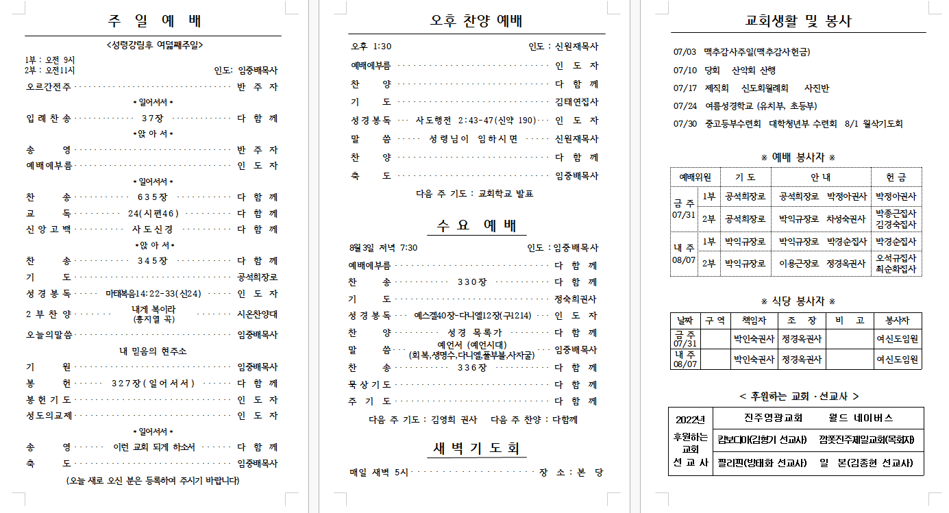 2022³â 07¿ù 03ÀÏ (¸ÆÃß°¨»çÁÖÀÏ) ÁÖº¸