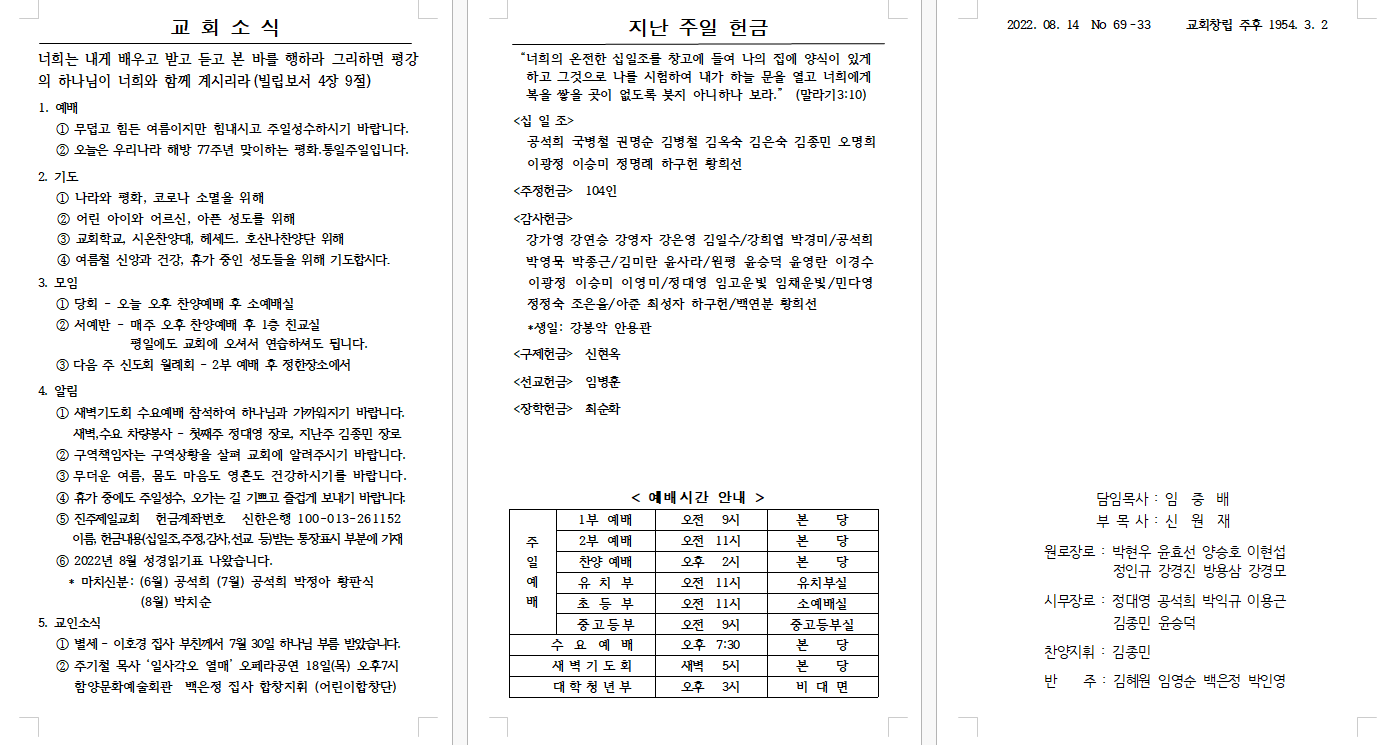 2022³â 08¿ù 14ÀÏ (ÆòÈÅëÀÏÁÖÀÏ) ÁÖº¸