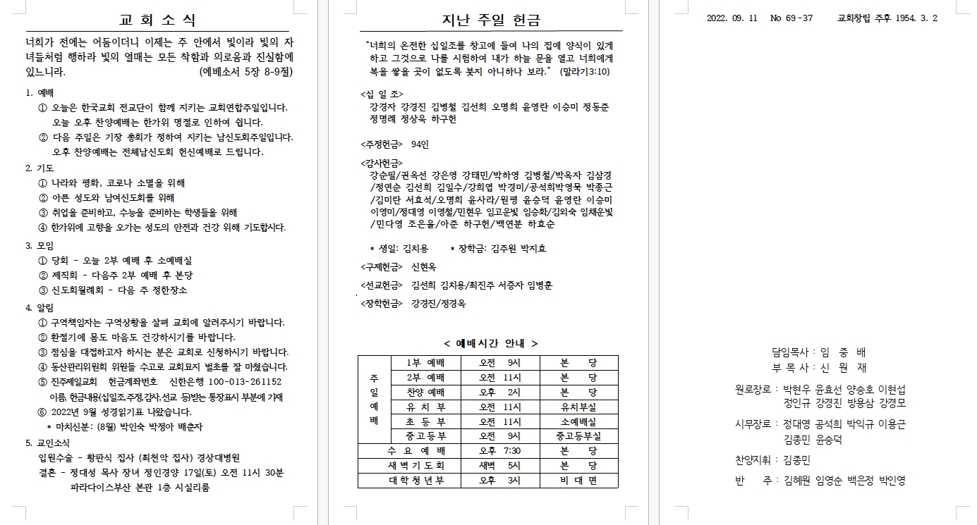 2022³â 09¿ù 11ÀÏ (±³È¸¿¬ÇÕÁÖÀÏ) ¿¹¹è