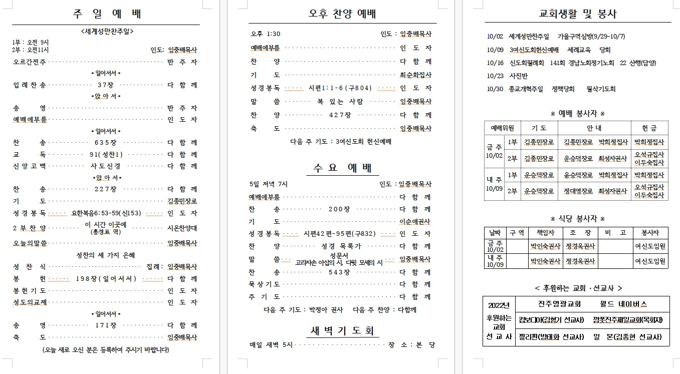 2022³â 10¿ù 30ÀÏ (Á¾±³°³ÇõÁÖÀÏ) ÁÖº¸