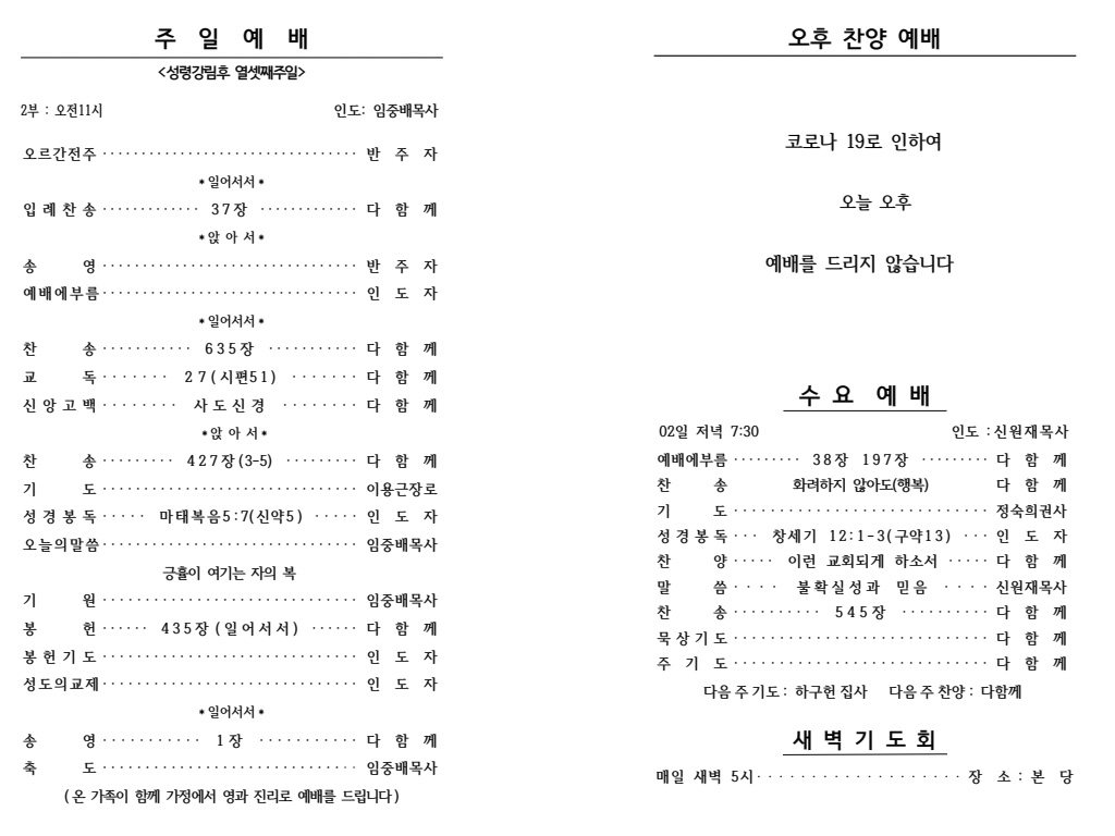 2020³â 08¿ù 09ÀÏ (ÆòÈÅëÀÏÁÖÀÏ) ÁÖº¸