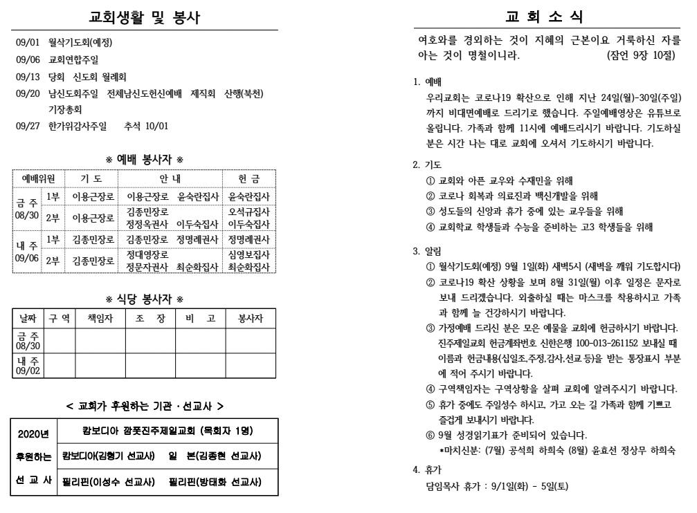 2020³â 09¿ù 06ÀÏ (âÁ¶Àý ù°ÁÖÀÏ) ÁÖº¸