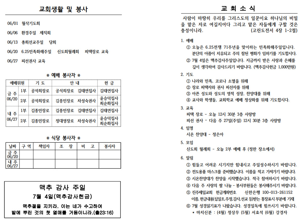 2021³â 07¿ù 04ÀÏ (¸ÆÃß°¨»çÁÖÀÏ) ÁÖº¸