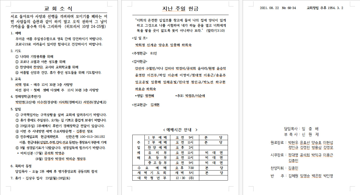 2021³â 09¿ù 12ÀÏ (±³È¸¿¬ÇÕÁÖÀÏ) ÁÖº¸