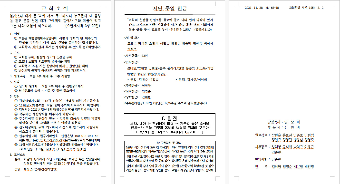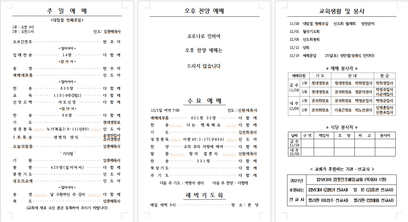2021³â 11¿ù 28ÀÏ (´ë¸²Àý ù°ÁÖÀÏ) ÁÖº¸