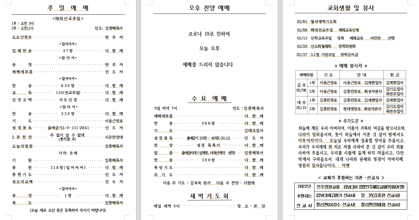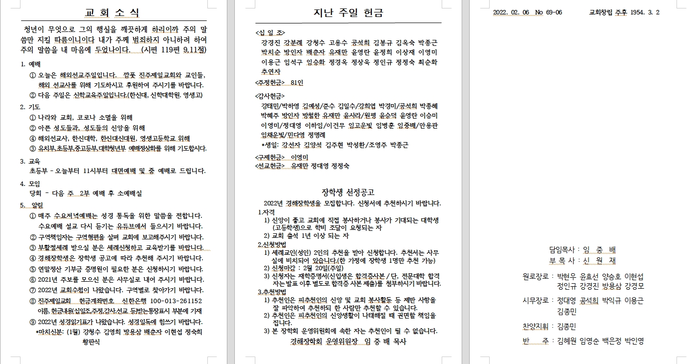 2022³â 03¿ù 06ÀÏ (±³È¸Ã¢¸³ ±â³äÁÖÀÏ) ÁÖº¸