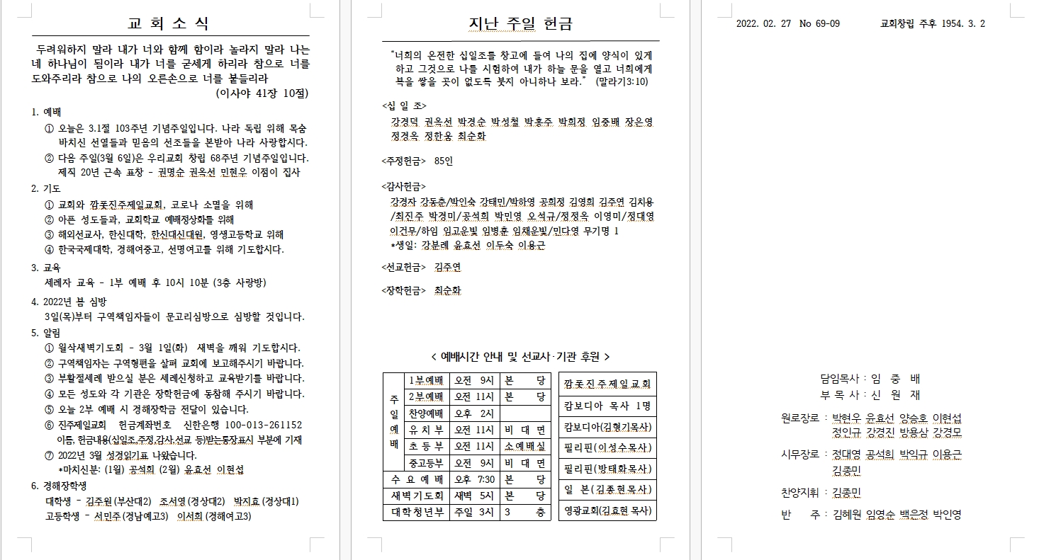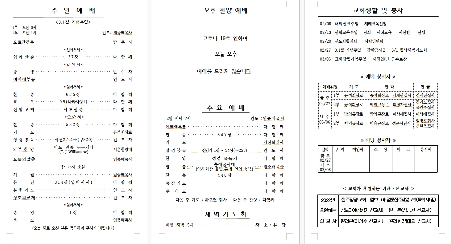 2022³â 03¿ù 06ÀÏ (±³È¸Ã¢¸³ ±â³äÁÖÀÏ) ÁÖº¸
