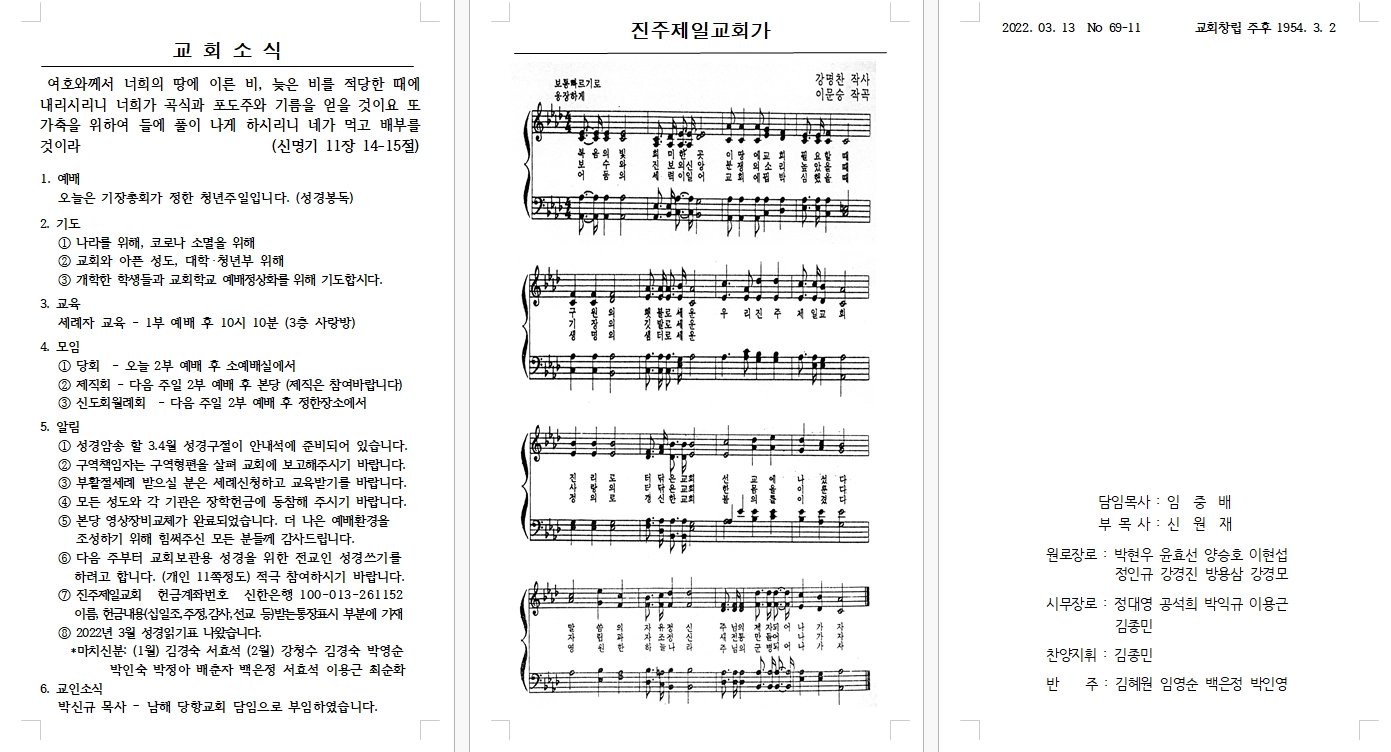 2022³â 03¿ù 06ÀÏ (±³È¸Ã¢¸³ ±â³äÁÖÀÏ) ÁÖº¸