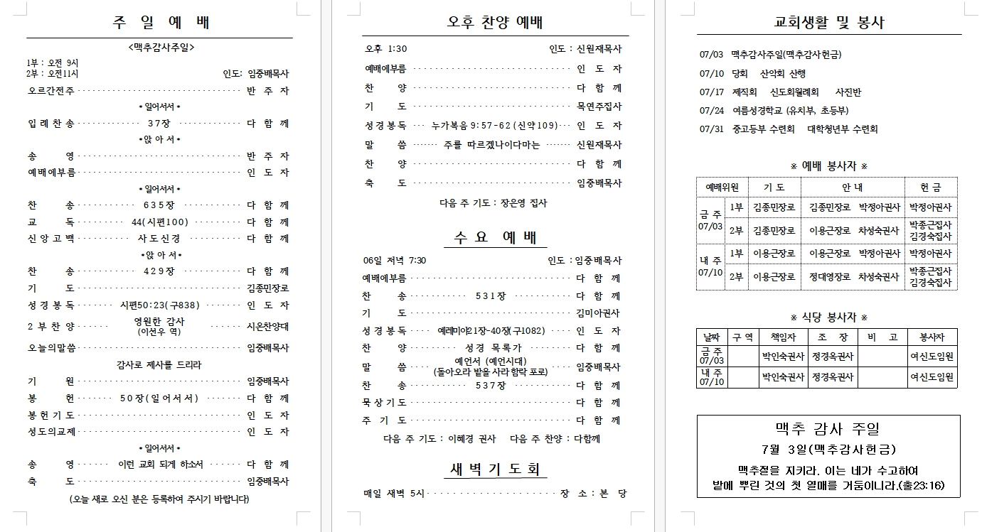 2022³â 07¿ù 03ÀÏ (¸ÆÃß°¨»çÁÖÀÏ) ÁÖº¸