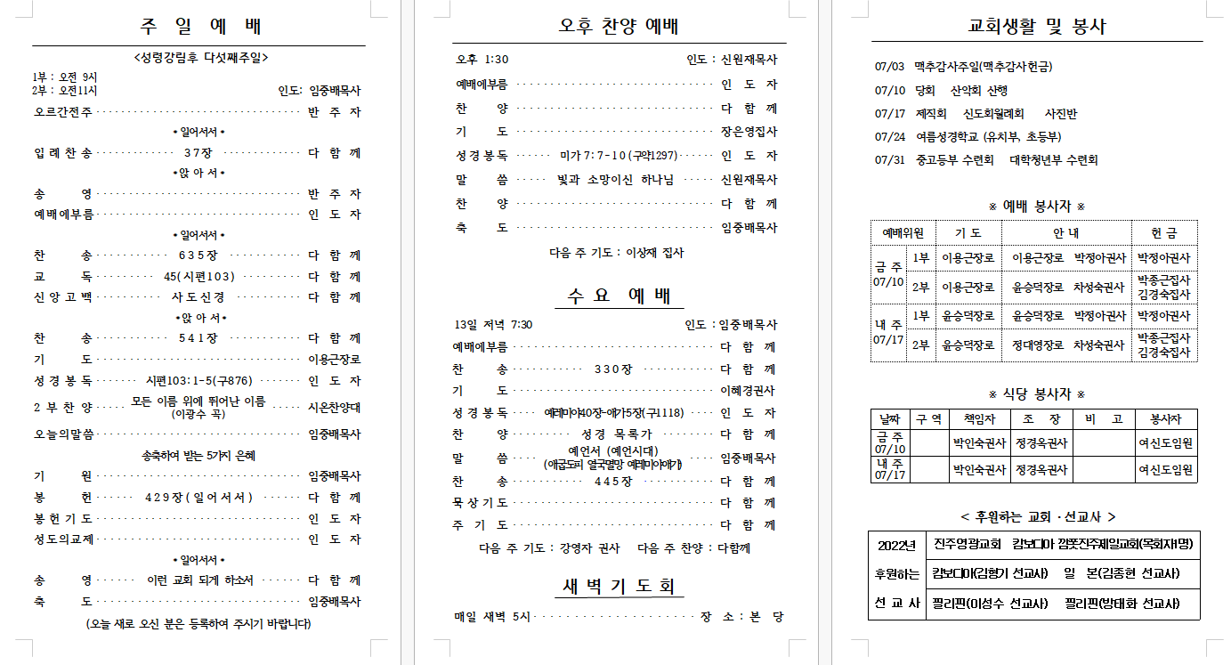 2022³â 07¿ù 03ÀÏ (¸ÆÃß°¨»çÁÖÀÏ) ÁÖº¸