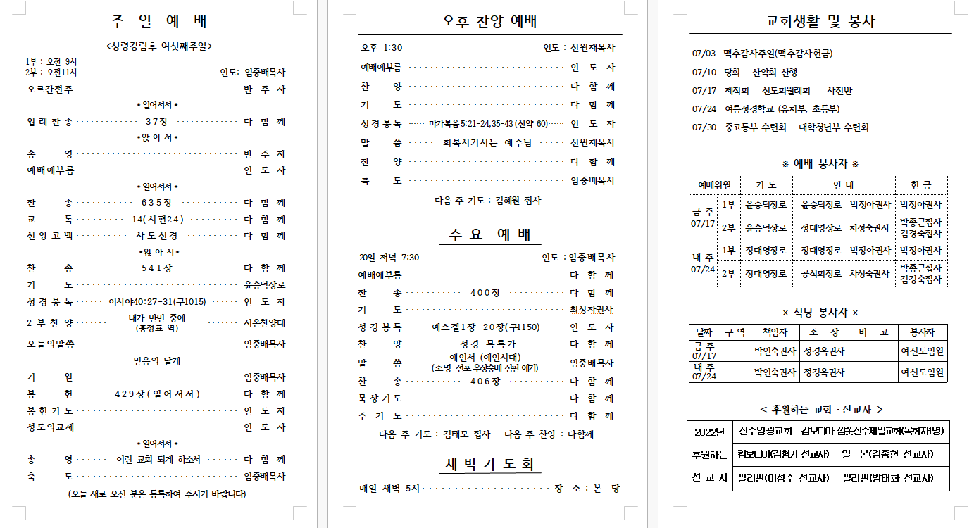 2022³â 07¿ù 03ÀÏ (¸ÆÃß°¨»çÁÖÀÏ) ÁÖº¸