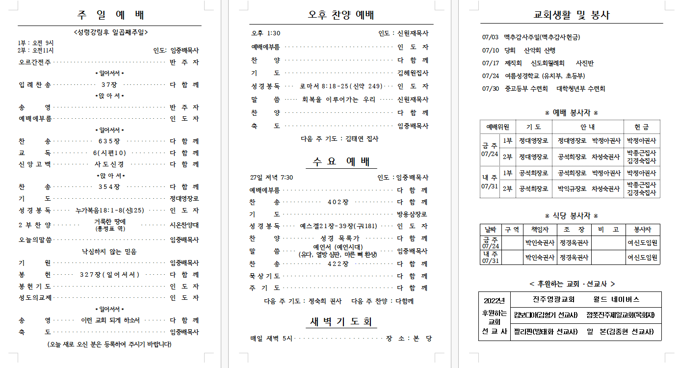 2022³â 07¿ù 24ÀÏ (¼º·É°¸²ÈÄ Àϰö°ÁÖÀÏ) ÁÖº¸