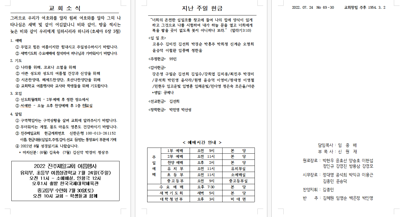 2022³â 07¿ù 03ÀÏ (¸ÆÃß°¨»çÁÖÀÏ) ÁÖº¸