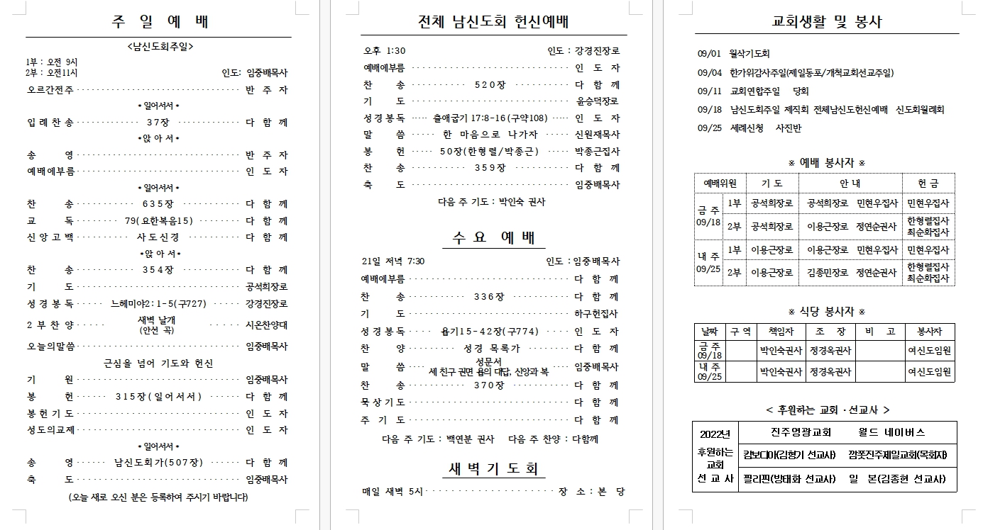 2022³â 09¿ù 11ÀÏ (±³È¸¿¬ÇÕÁÖÀÏ) ¿¹¹è