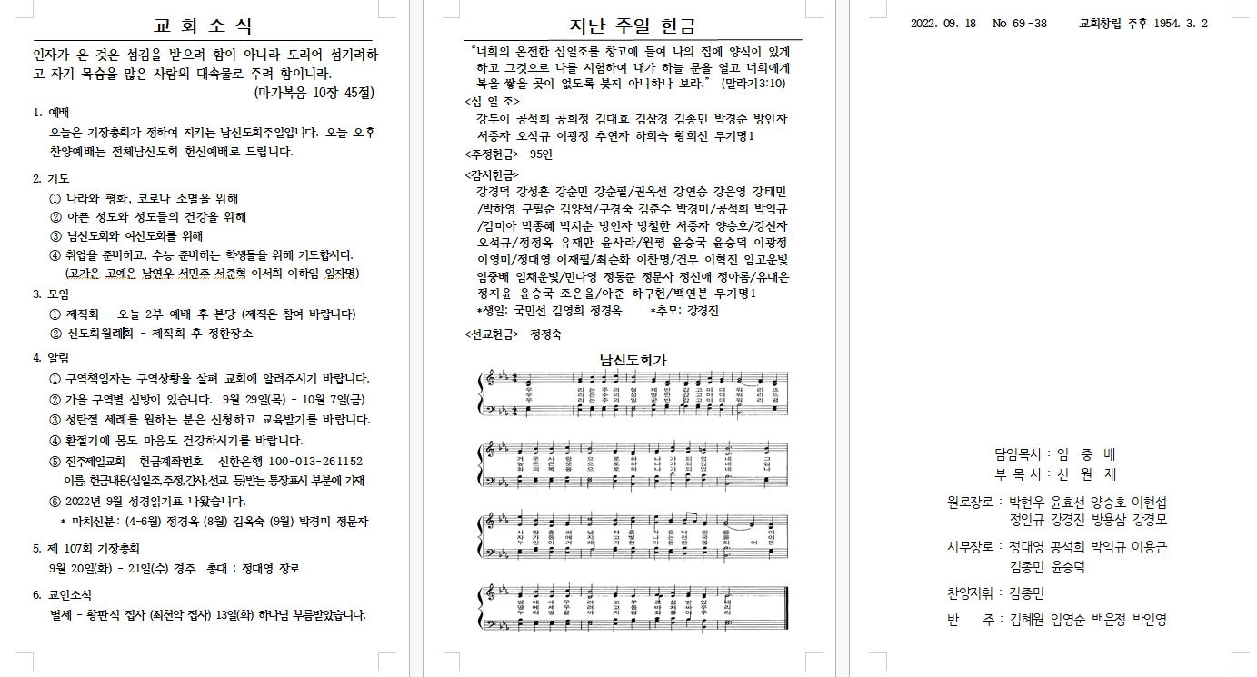 2022³â 09¿ù 18ÀÏ (³²½ÅµµÈ¸ÁÖÀÏ) ÁÖº¸